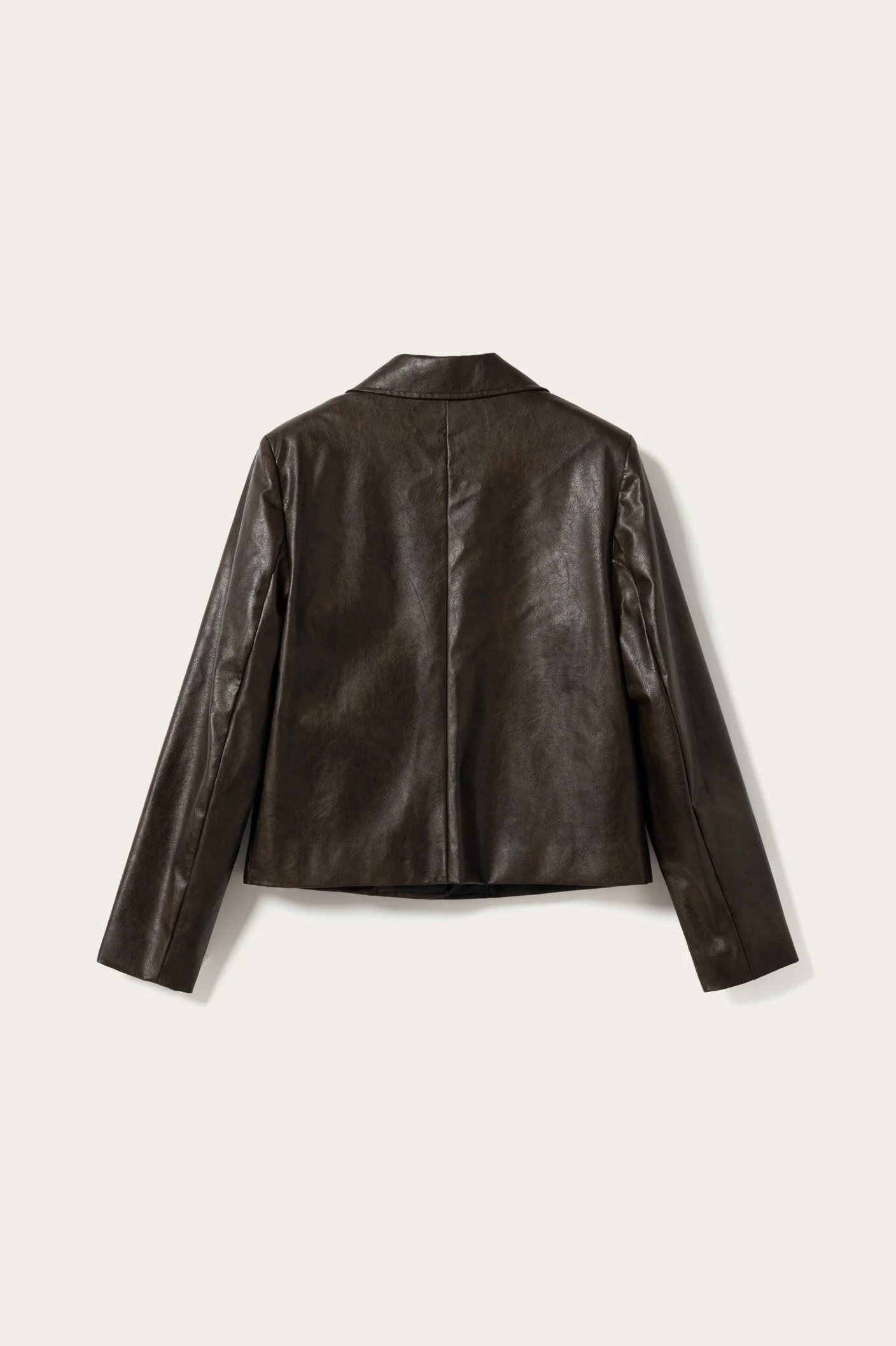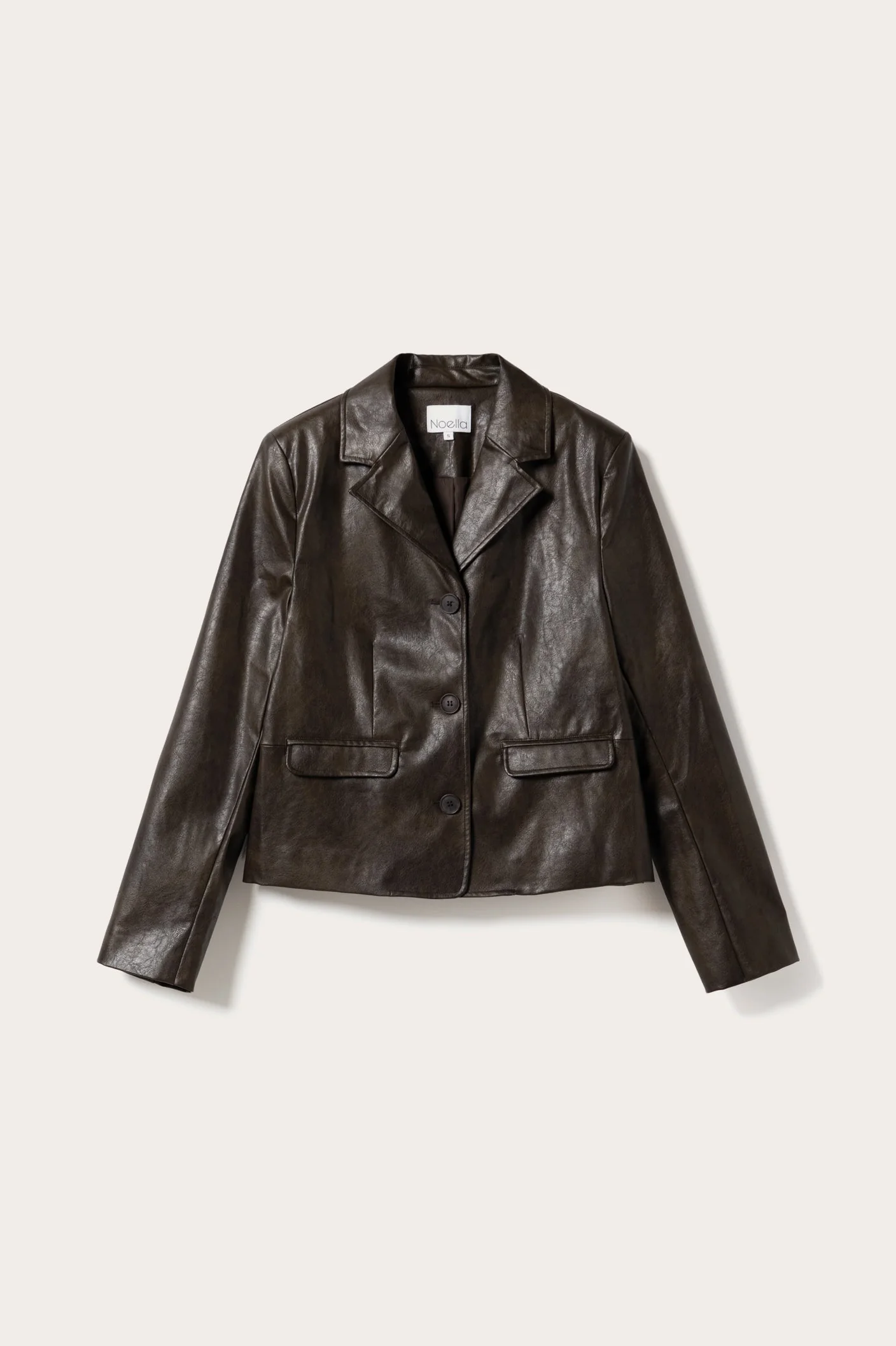 Laurica jakki er leðuráferðarjakki með klassísku sniði, V-hálsmáli, stórum tölum & kraga. Laurica jakkann má nota bæði sem jakka og blazer.