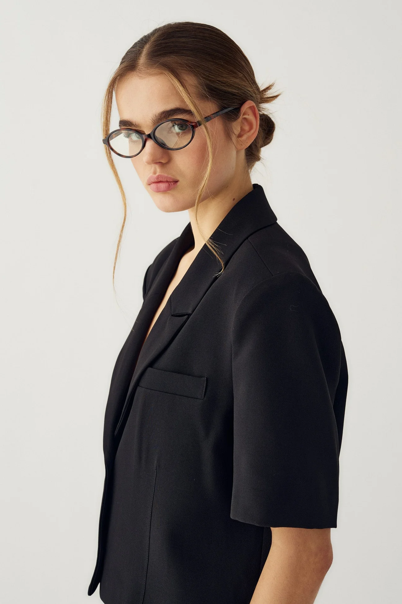 N-Leanne Crop Blazer færir nýtt yfirbragð með yfirstærðarsniði, stuttri lengd og stuttum ermum.