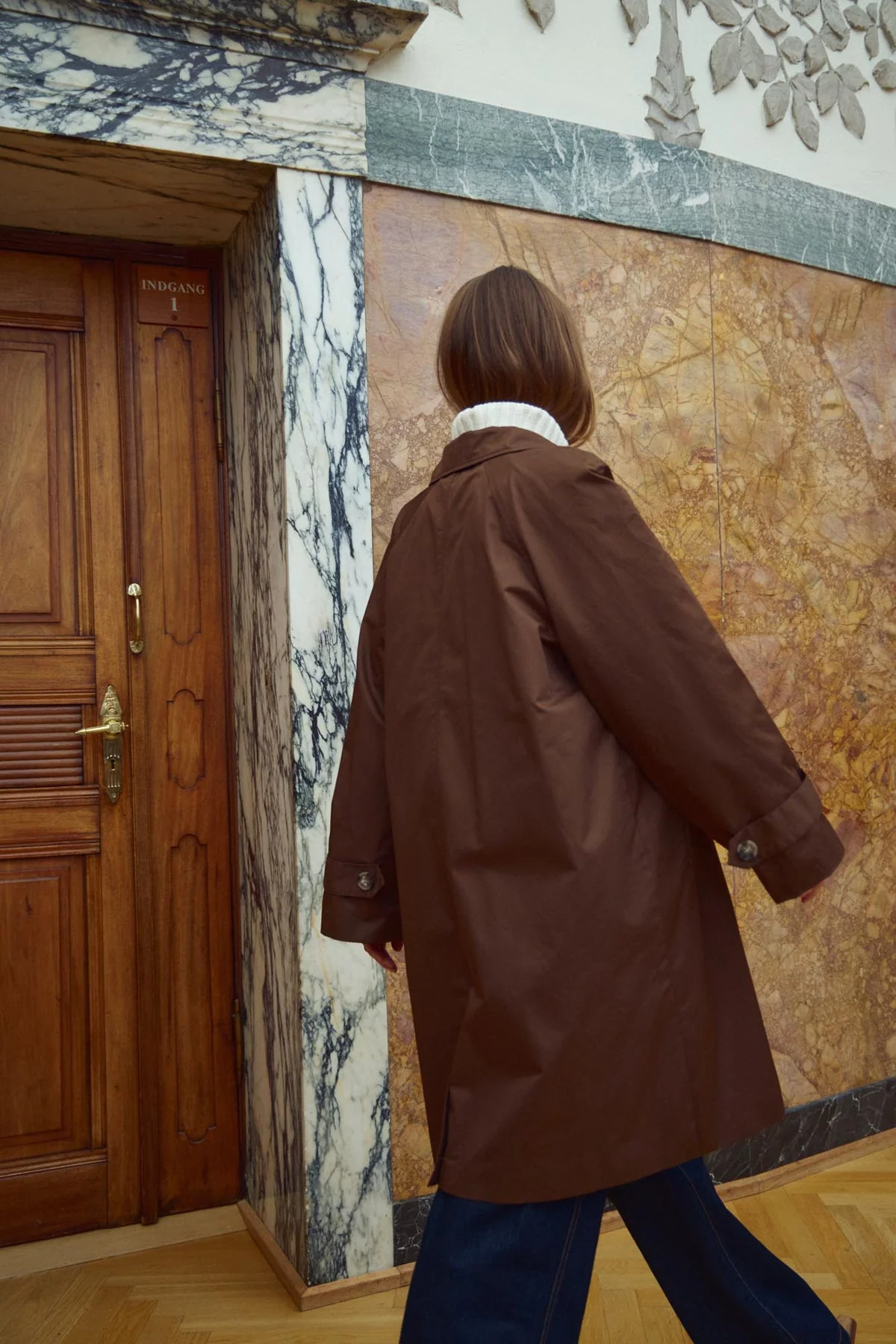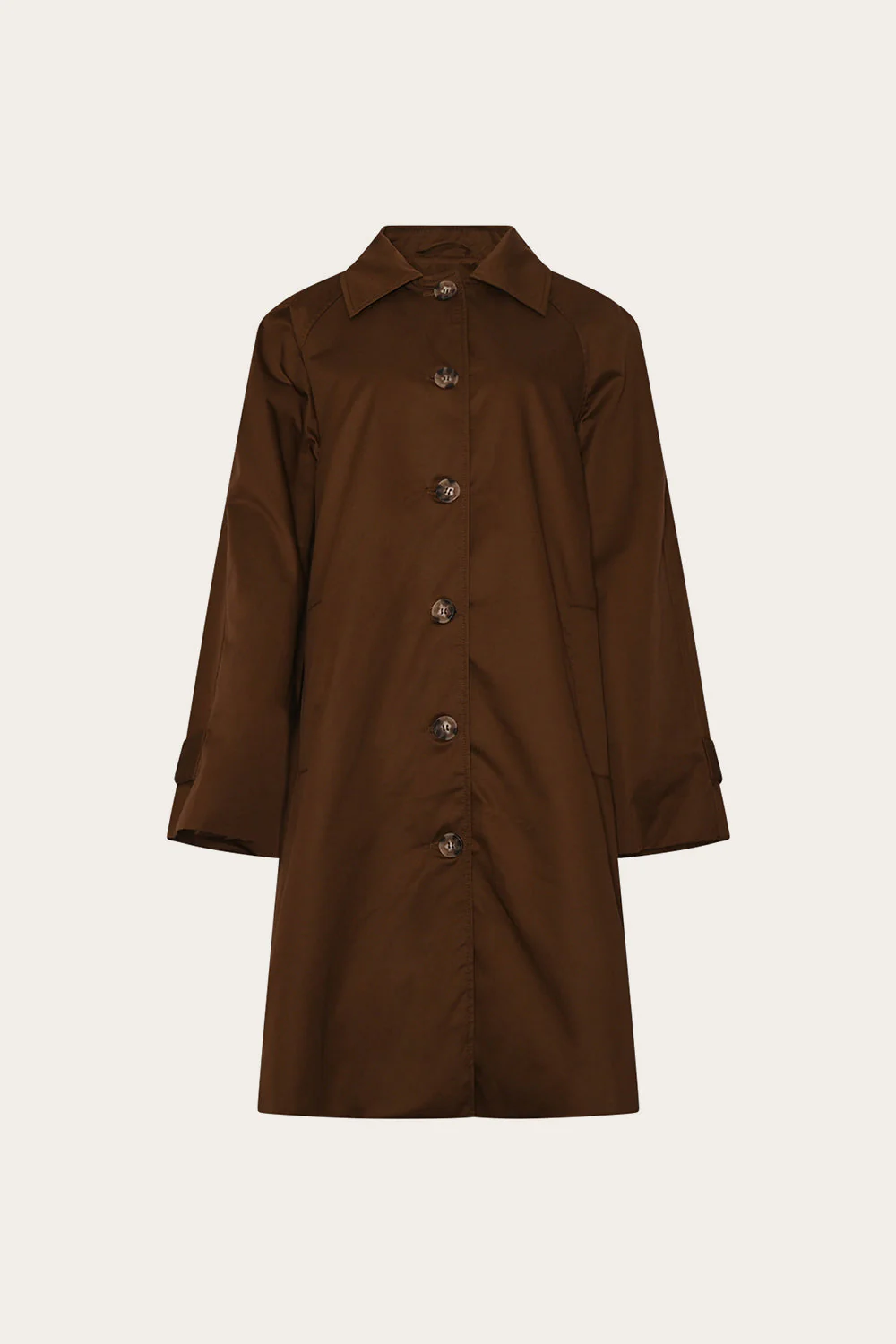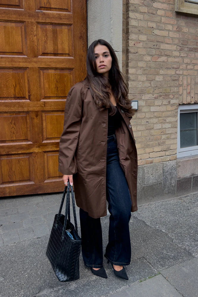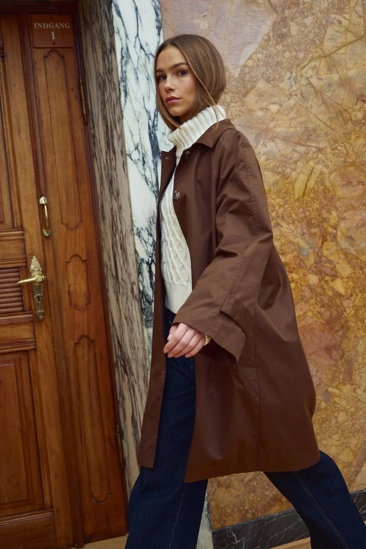 Stílhreinn, síður jakki í yfirbreiðu sniði með hnappaloku. Léttur og fjölhæfur jakki sem hentar vel bæði til hversdags og við fínni tilefni.