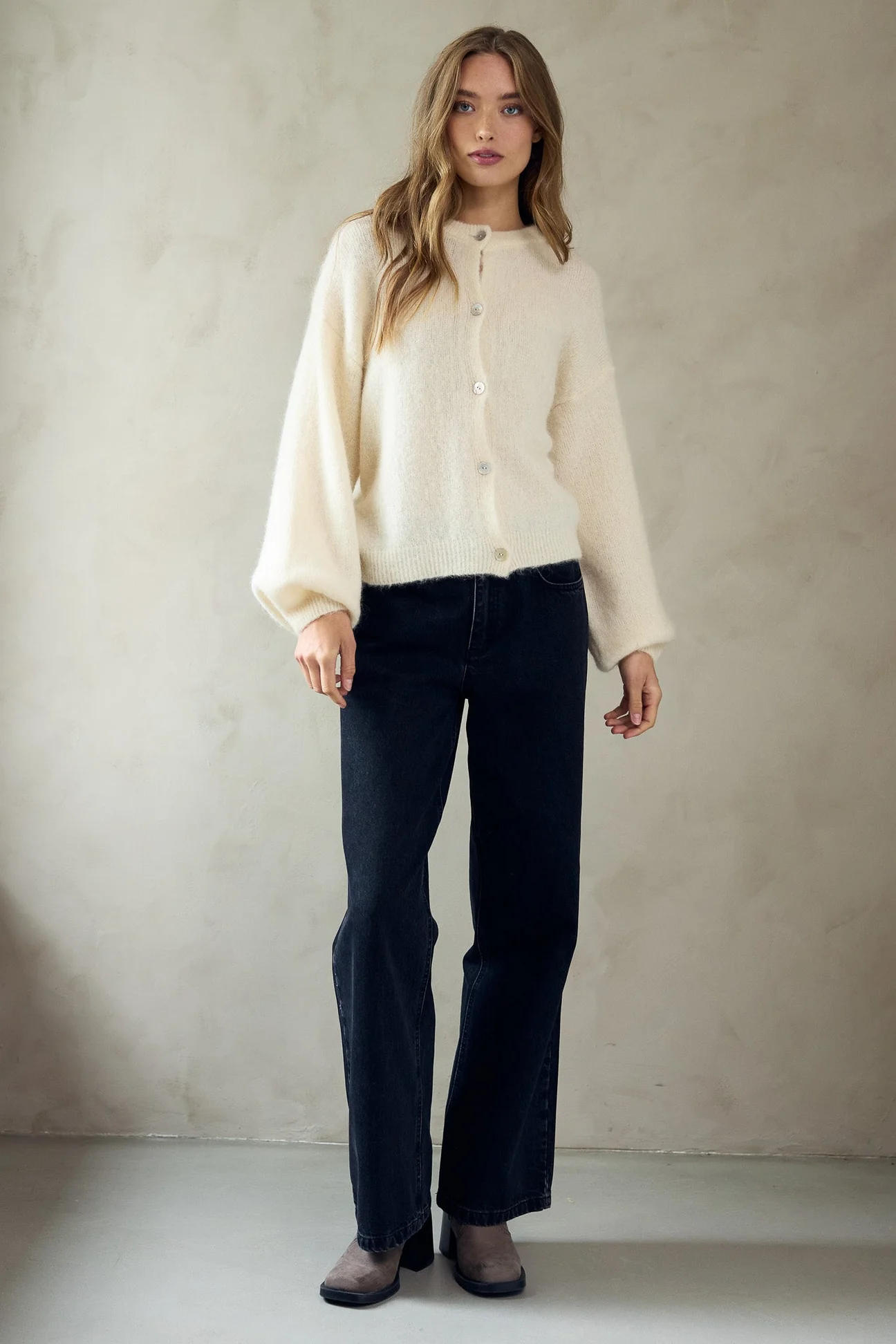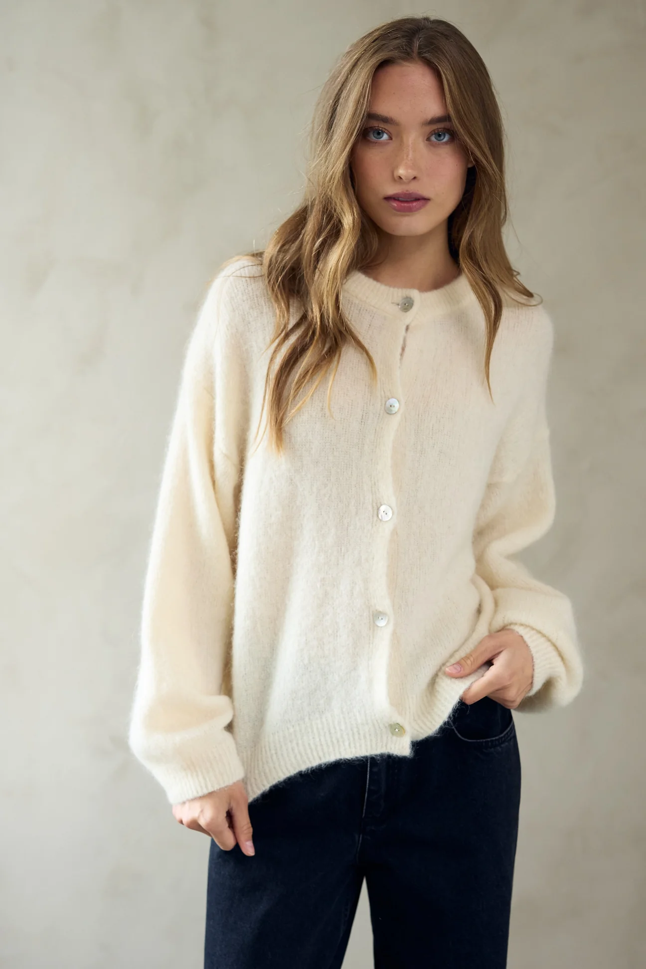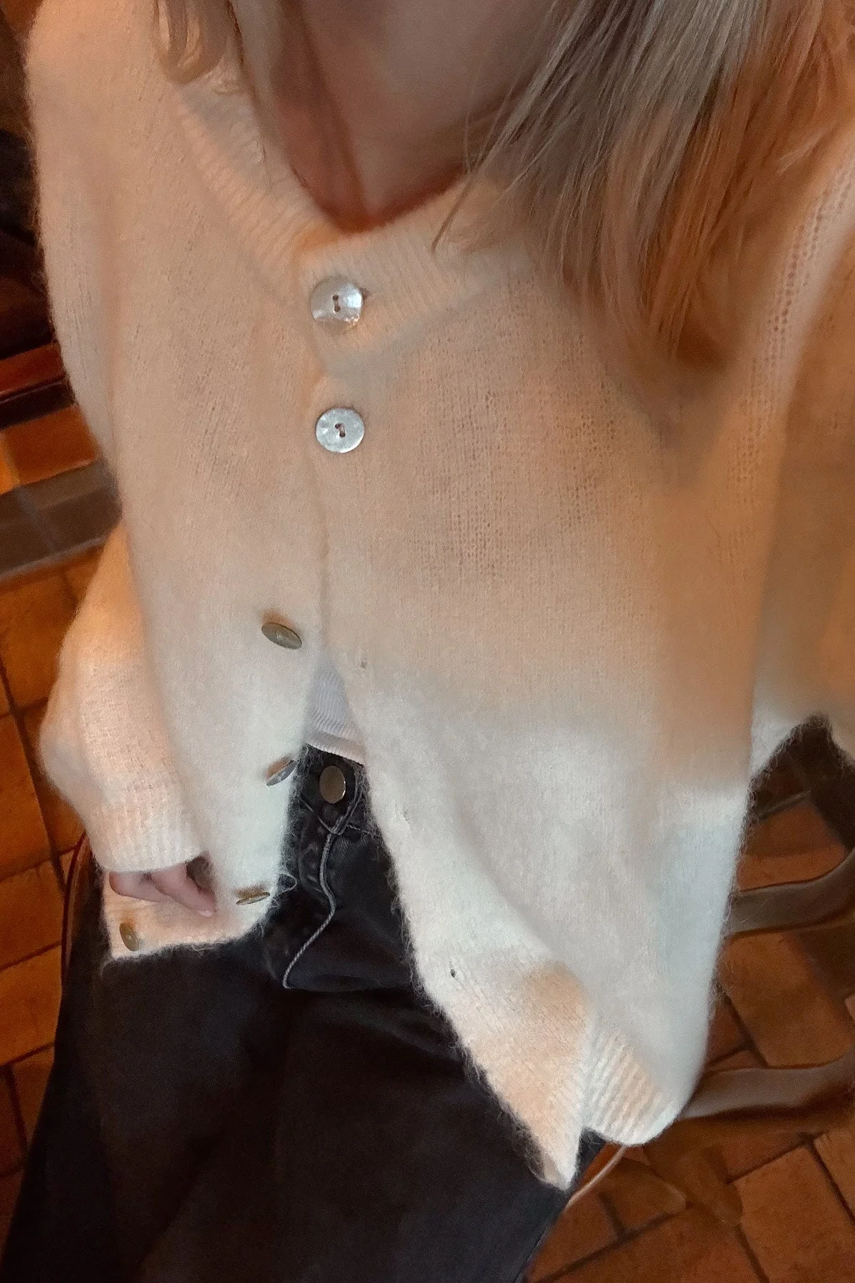 Virkilega falleg mohair peysa frá Noella. Hneppt niður.