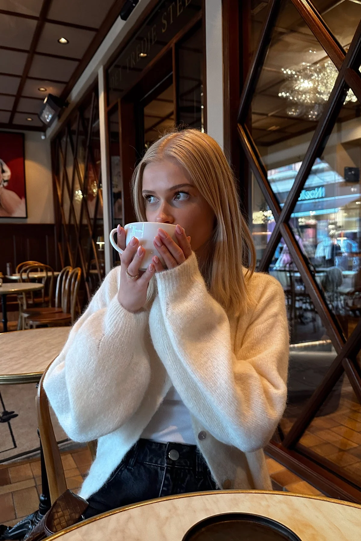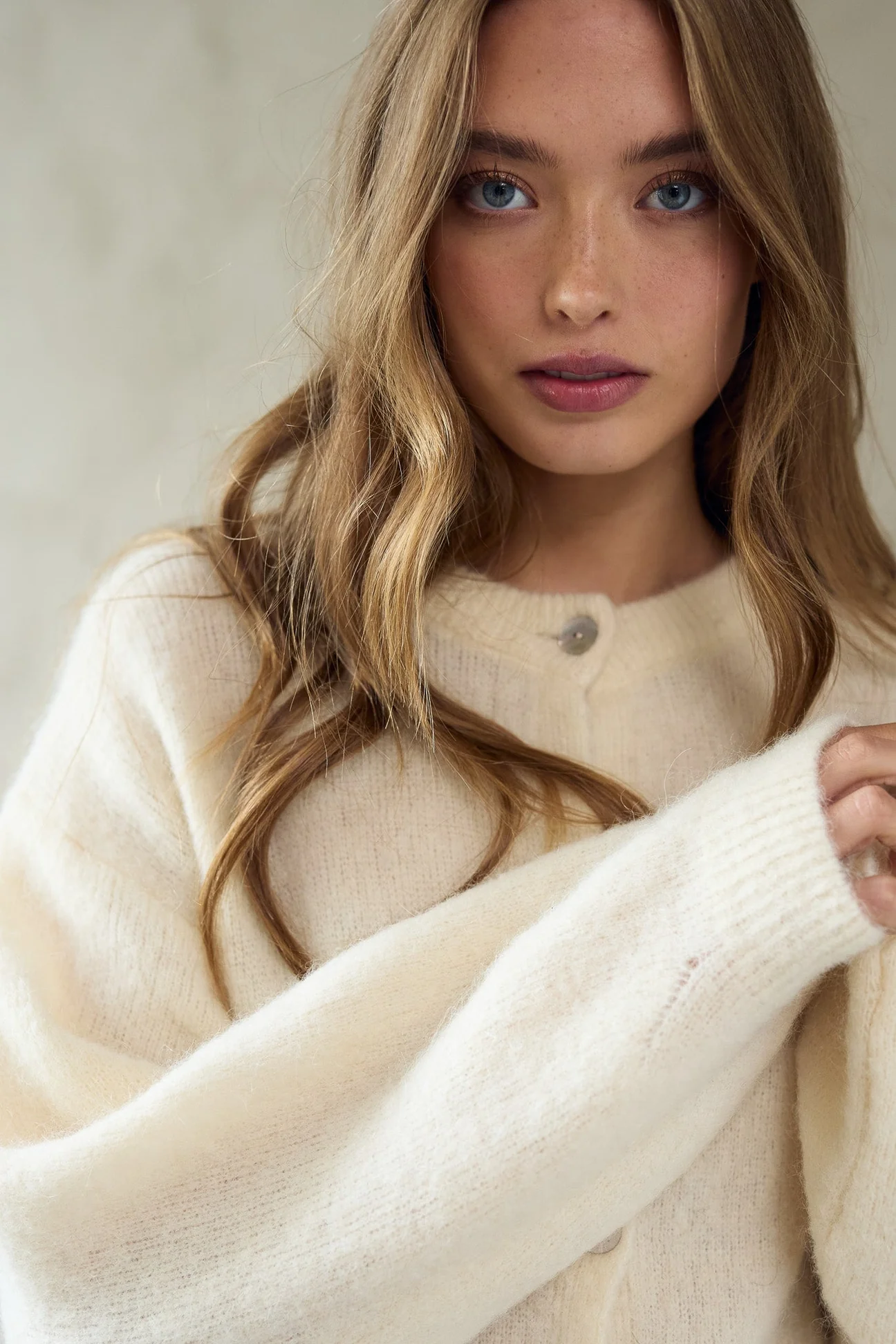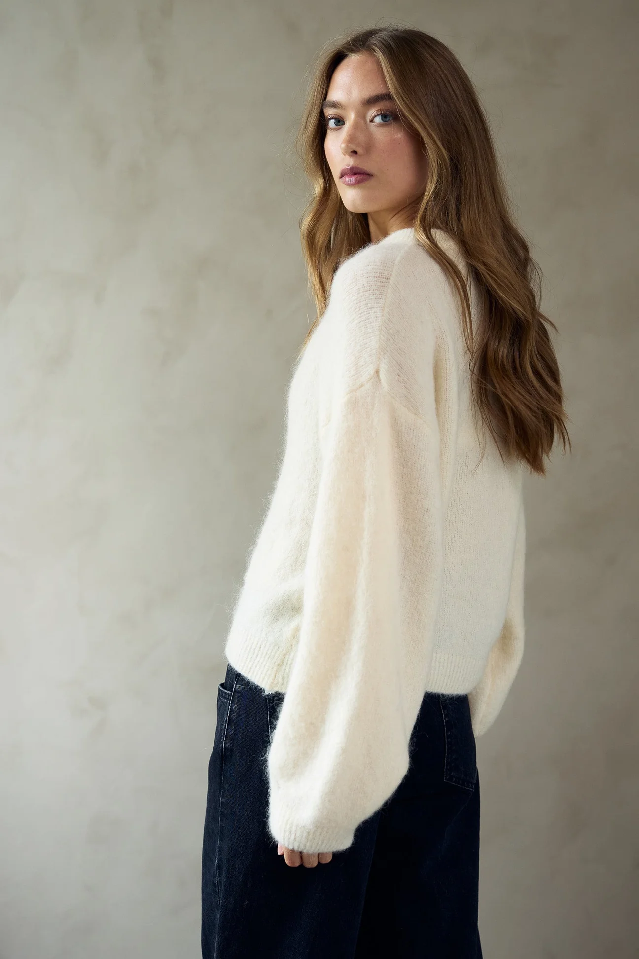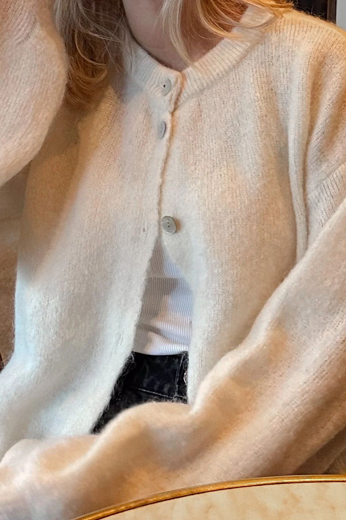 Virkilega falleg mohair peysa frá Noella. Hneppt niður.