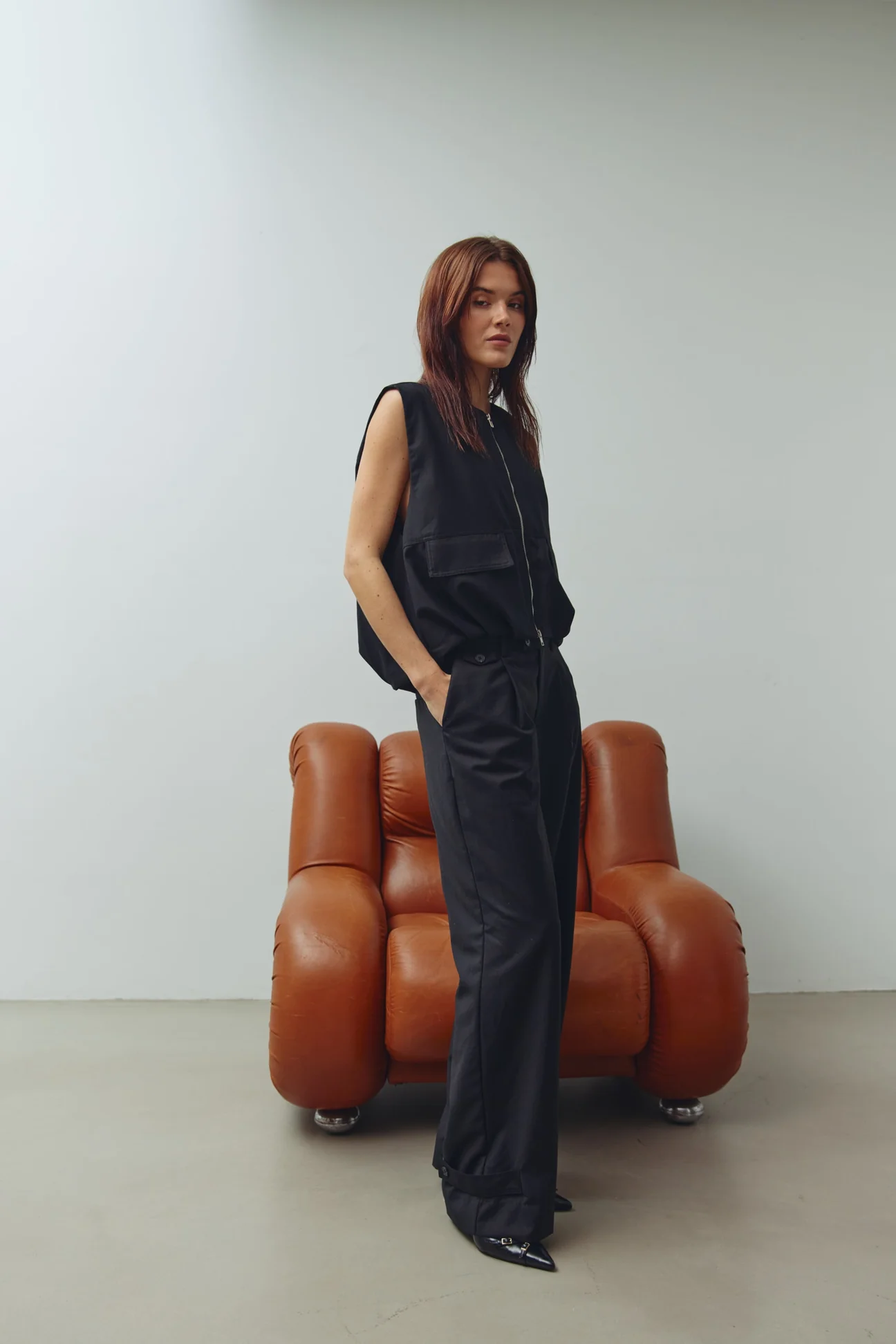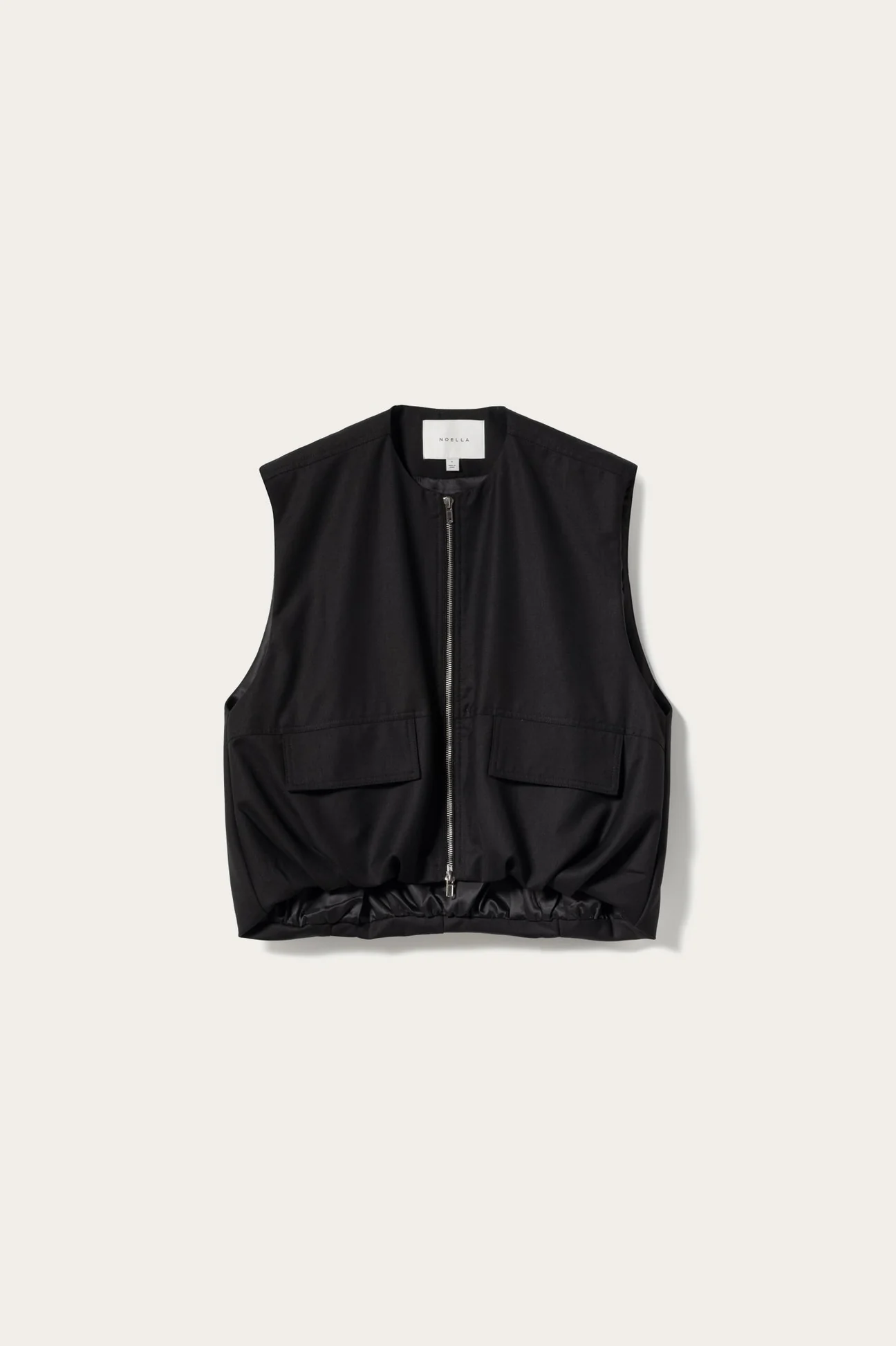 Létt vesti með tvíhliða rennilás, hagnýtum hliðarvösum og fíngerðri rykkingu neðst á faldinum sem gefur fallega samankreista áferð.