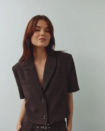 Leanne crop blazer brúnn – Noella